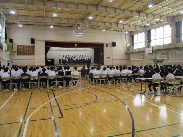 10月3日の合唱祭本番に向けて、①②校時に1年生、③④校時に2年生、⑤⑥校時に3年生がリハーサルを行いました。