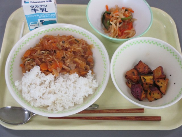テジプルコギ丼、牛乳、大学いも、ナムル でした。
