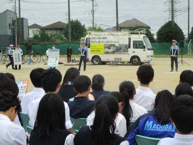 町田警察の方による講話や、スタントマンによる事故のリアルな再現を通して、ルールとマナーを守ることの大切さを改めて感じることができました。