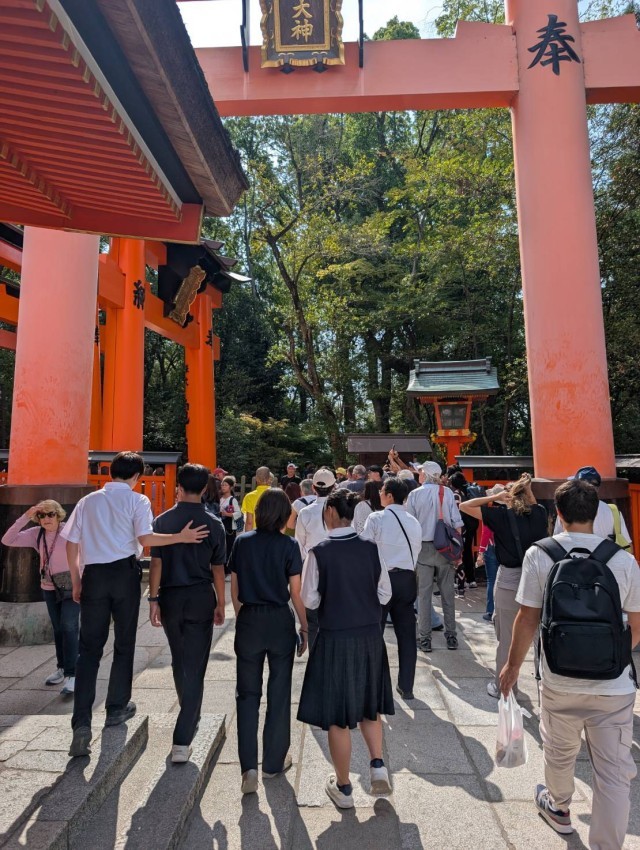 写真は、嵯峨野の竹林や渡月橋、伏見稲荷大社などの散策班。