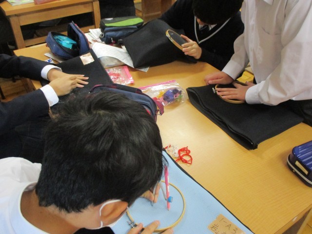 家庭は「生活を豊かにするための布を用いた製作」の単元で、ししゅうをする作業に取り組みました。