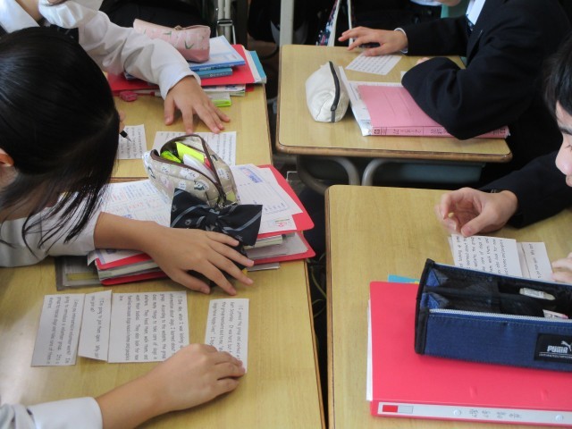 2年英語では、単語を使って簡単なゲームをした後、Kotaが学校新聞でどんなボランティア活動を紹介しているかを英語で学習しました。