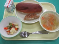 ターメリックライス、牛乳、魅惑のハワイアンカレー、コールスローサラダ、りんご でした。