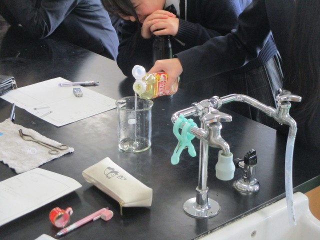 理科では、5種類のプラスチック(PET、PP、PS、PVC、HDPE)について、プラスチックの種類によって違う性質をもつことを、実験を通して確認しました。