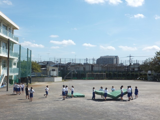 保健体育は走高跳に取り組み、片づけをしているところです。