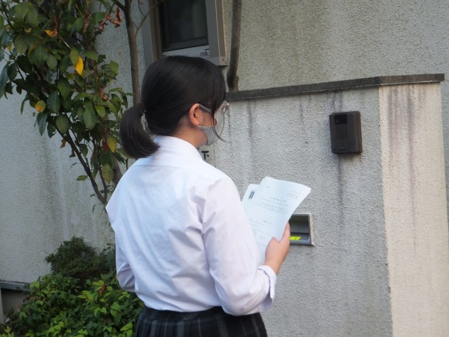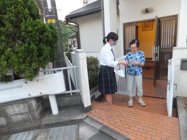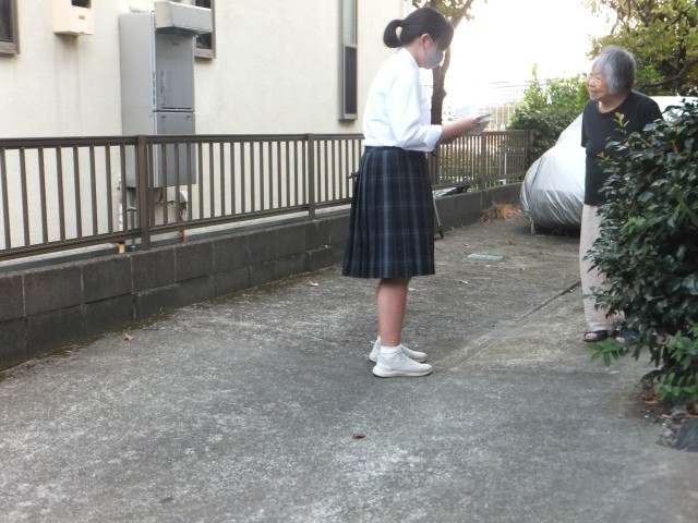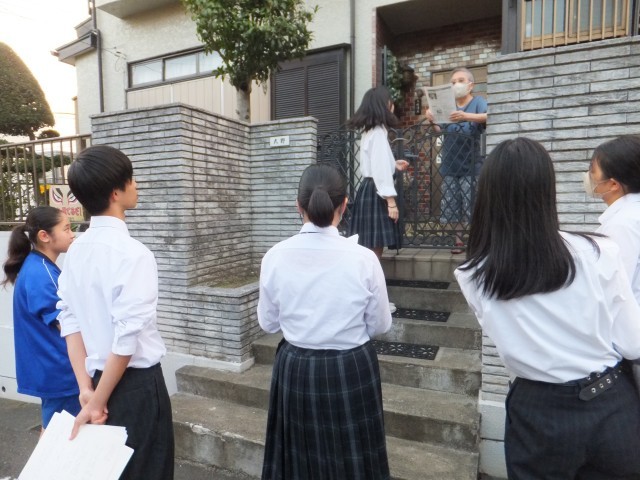 合唱コンクールの練習の取組がだんだんと熱が入ってきたこの時期、合唱実行委員が近隣のお宅にあいさつに出かけました。