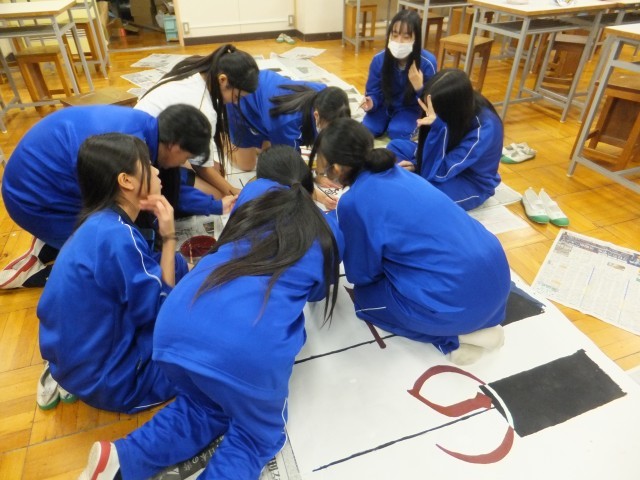 1階美術室では、美術・イラスト部が合唱コンクール舞台に掲げる大看板を制作しています。