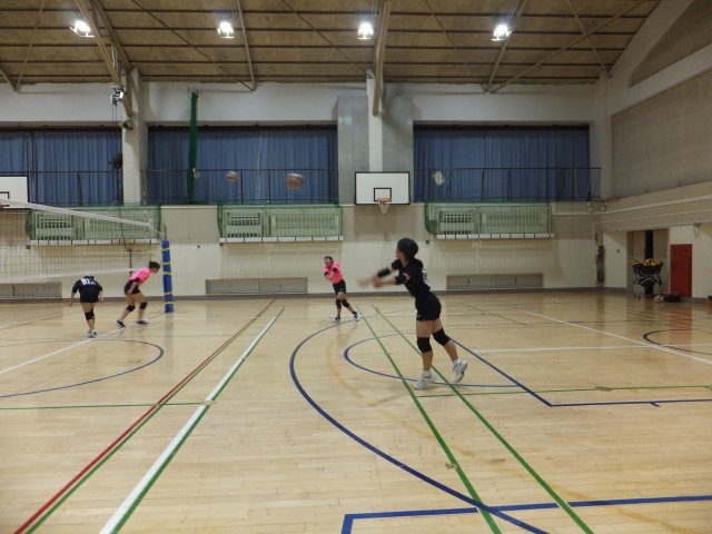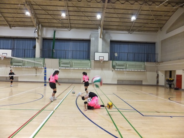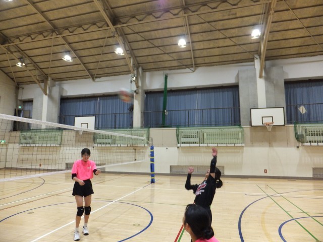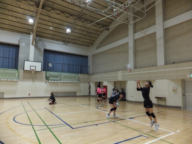 バレーボール部は、体育館の全面を使っての練習。
