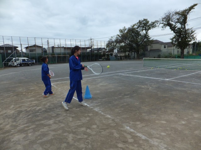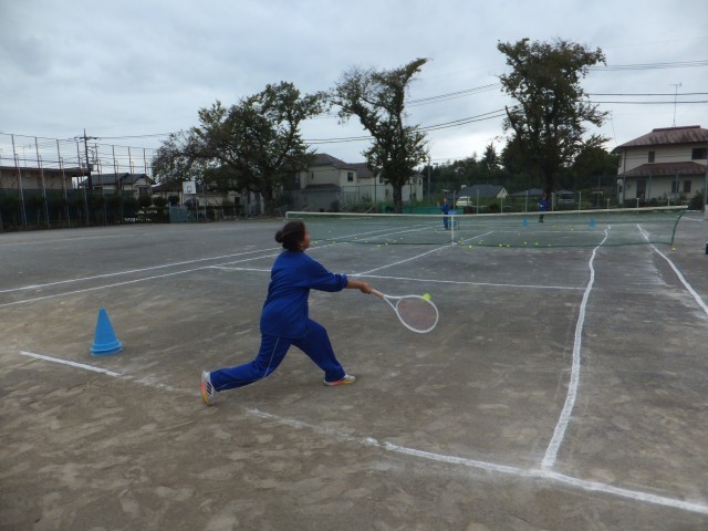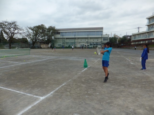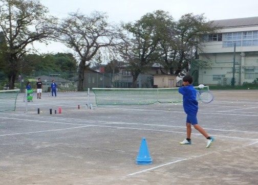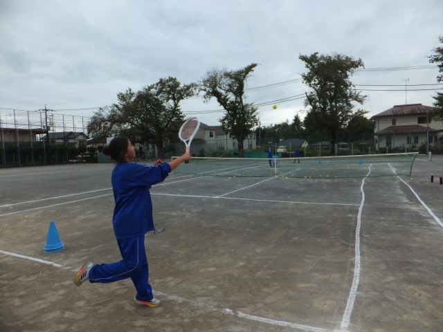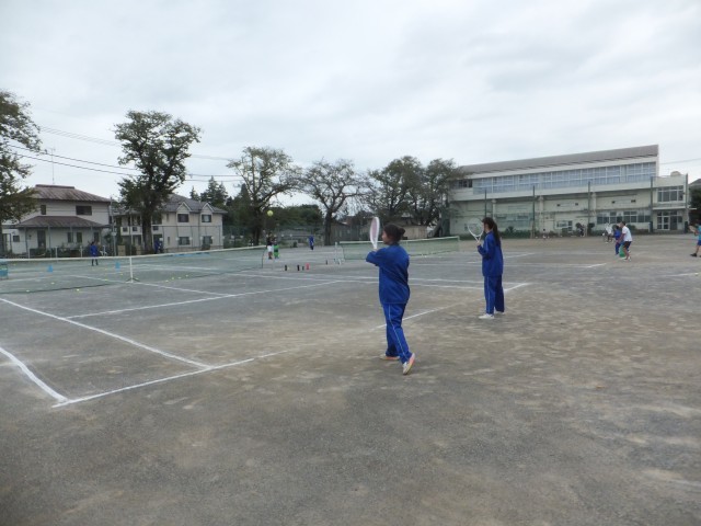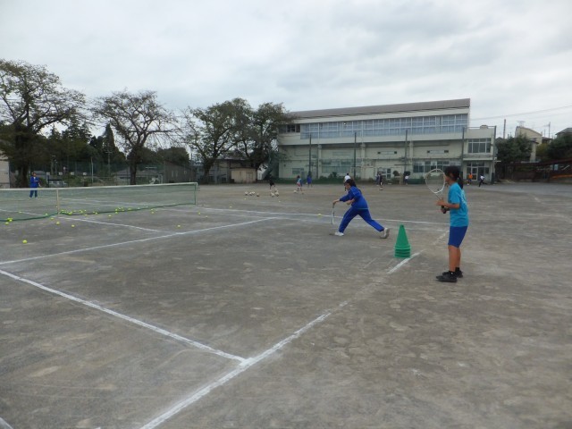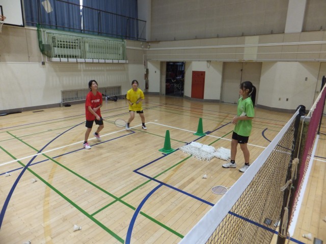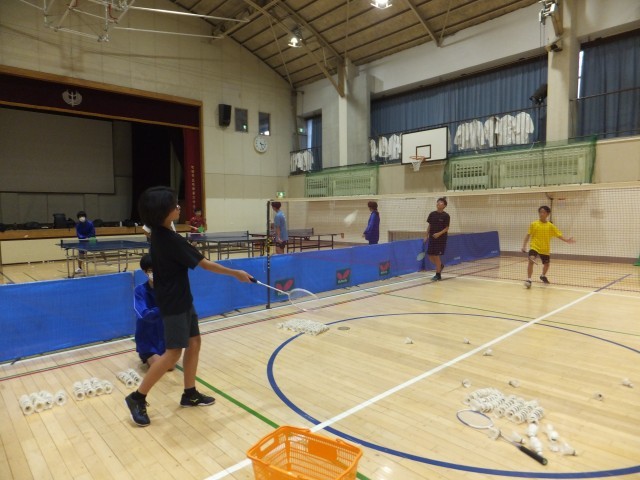 体育館手前ではバドミントン部が、校庭の中央ではテニス部がコーチと顧問の指導を受けながら練習をしていました。