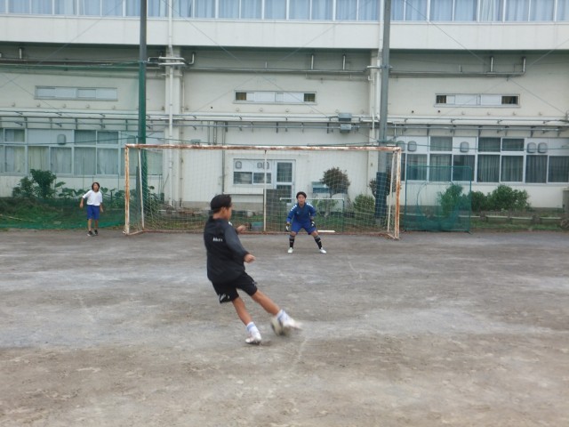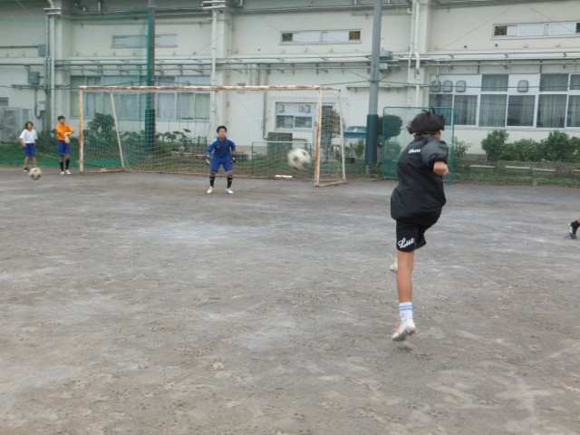 サッカー部は、シュート練習をしていました。