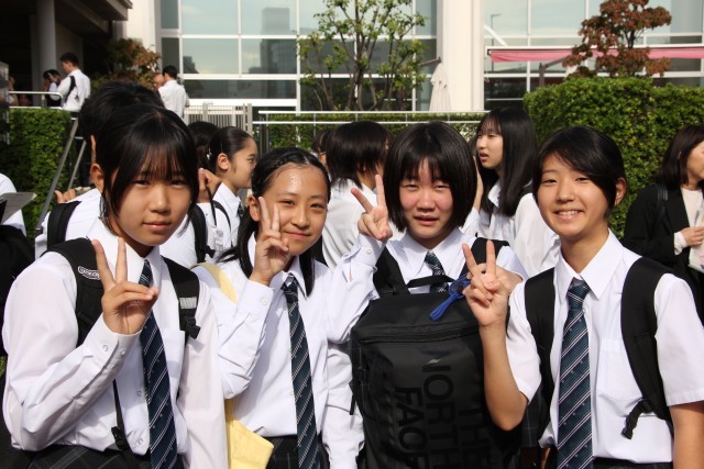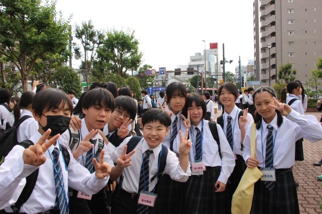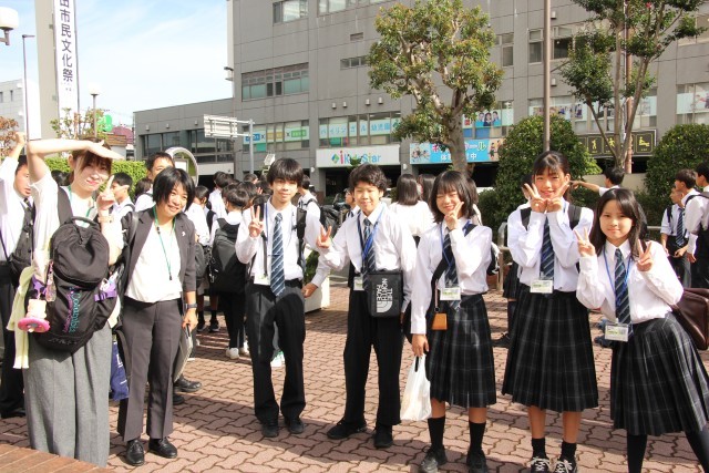 8時45分、一般生徒にさきがけて各種委員や係の生徒が市民ホール前広場に続々と集まってきました。好天に恵まれ、これまで準備してきた成果を発表しようと皆ワクワクしています。