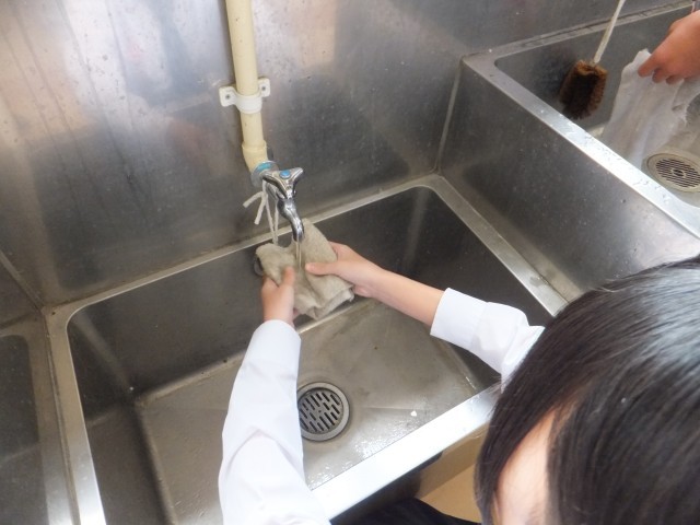 最後の写真は、その雑巾をきちんと洗っている様子です。