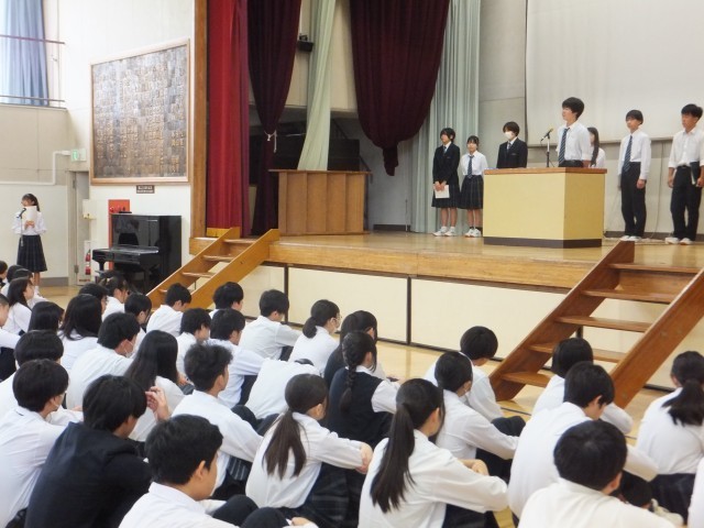 生徒会長、各学年委員長、生活、美化、保健、図書、放送、体育委員会の順でした。