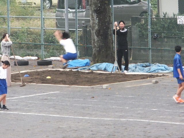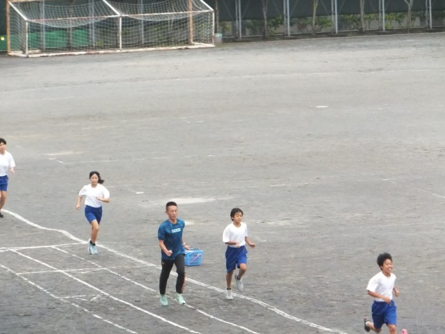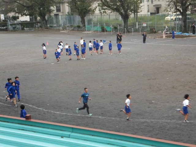 きょうも、ラインを引いて準備をして、「連合体育大会」の練習が始まりました。
