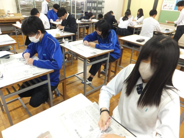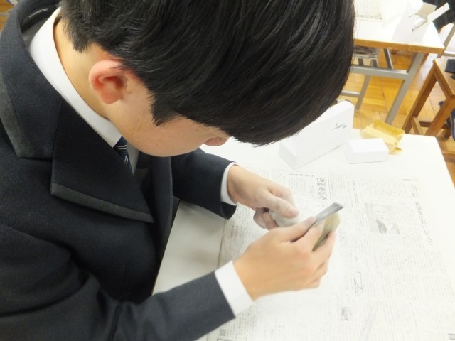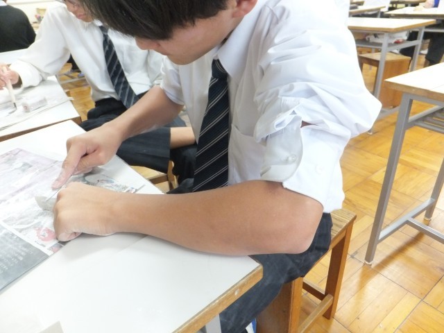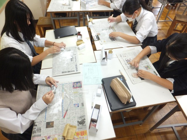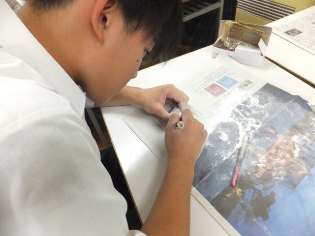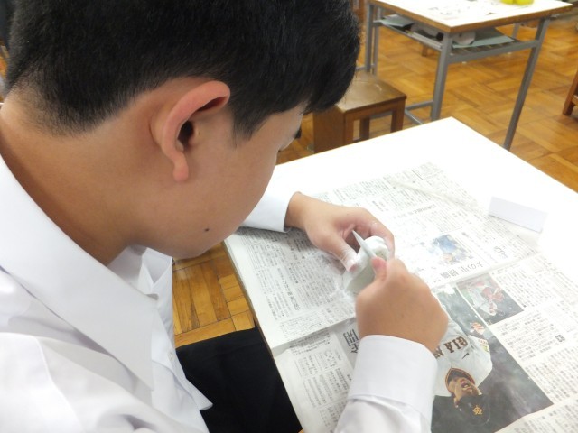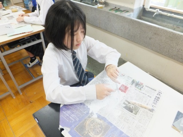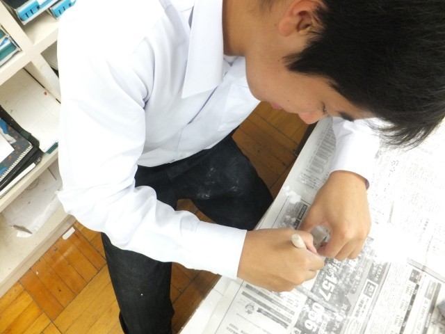 3年生美術は、篆刻に取り組み、石に印を掘っています。