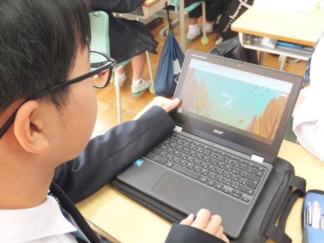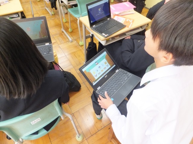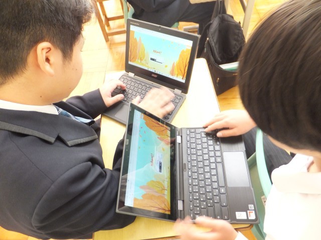 国語は、タブレットを利活用して「敬語」について取り組んでいました。