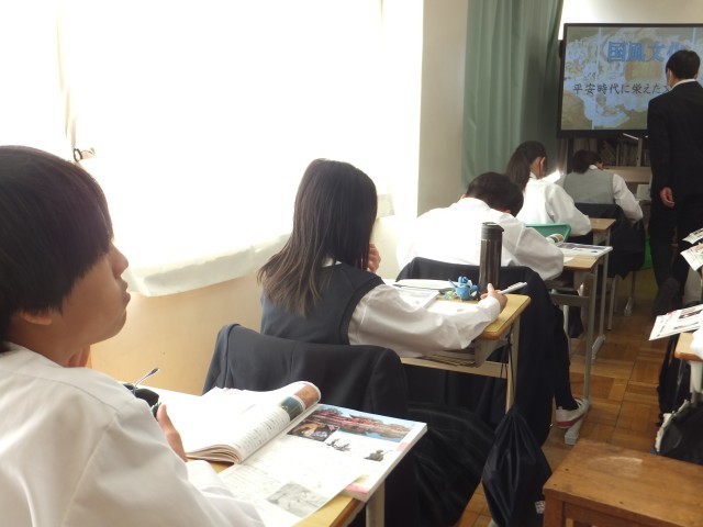 1年生社会科は、平安時代の文化として「国風文化」について学んでいました。