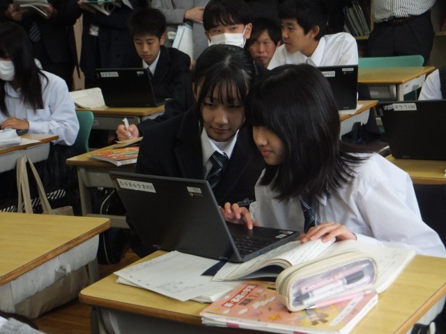 大勢の先生に見学されていても、授業はいつも通りに元気に明るく受けていました。