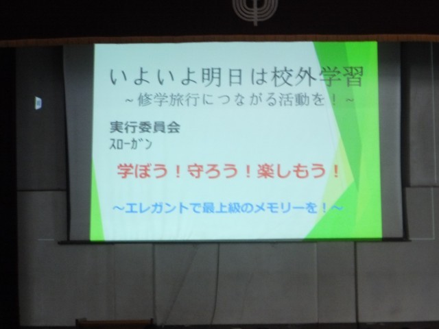 しかし、今までの準備と努力を大切に、明日「エレガントで最上級のメモリ」を2年生全員でつくりましょう。