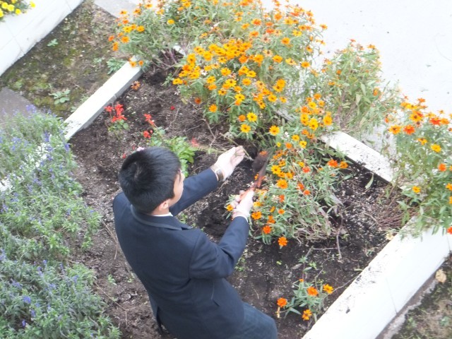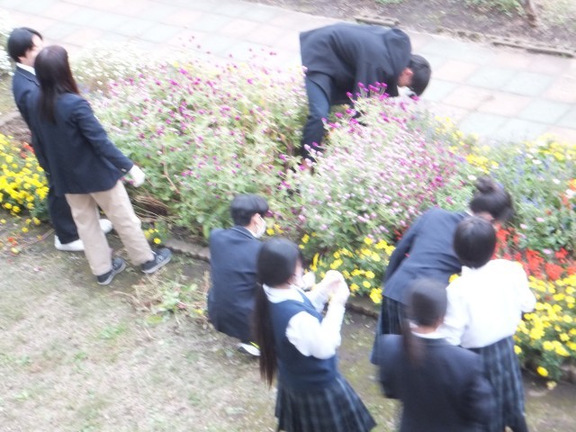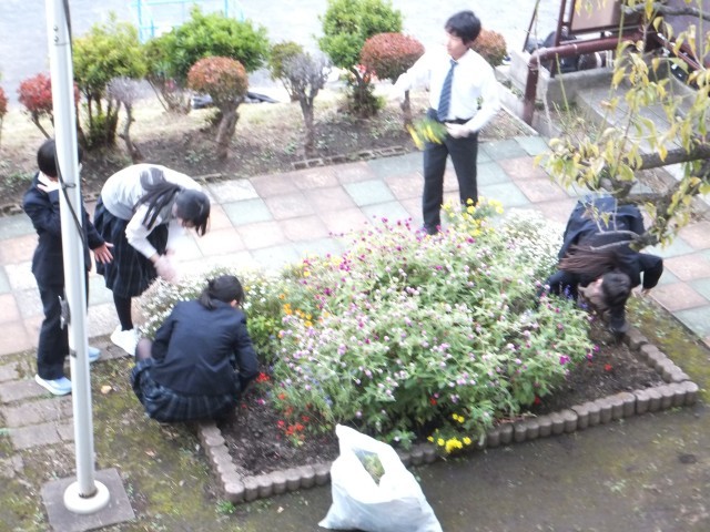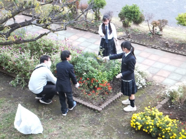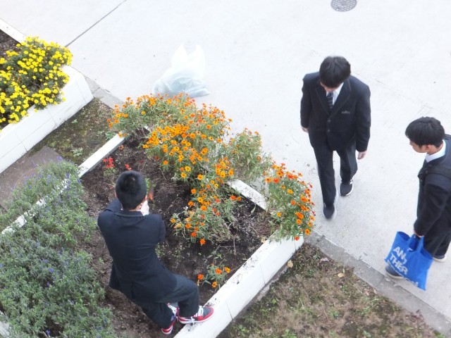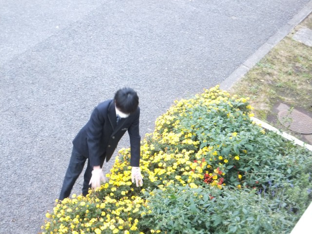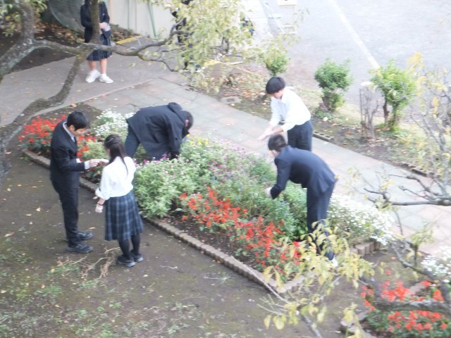 11月4日(火)放課後、美化委員会が花壇を整備していました。