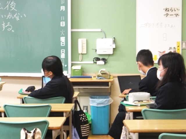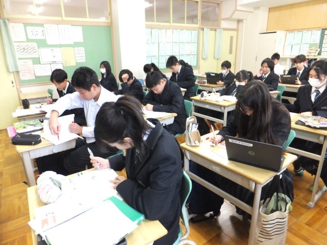 明日から定期考査なので、今までの復習やテスト対策をしている授業も多くみられます。