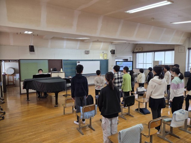 導入では、音楽教員から自己紹介及び3中(合唱コン・部活)紹介や期末考査体験を行いました。その後、忠3小と3中の校歌を合唱し楽しいひと時を過ごしました。