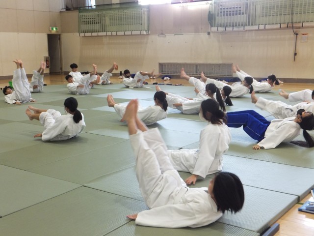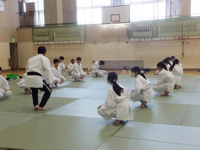 1年生は体育館で柔道に取り組んでいました。