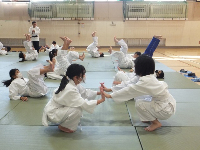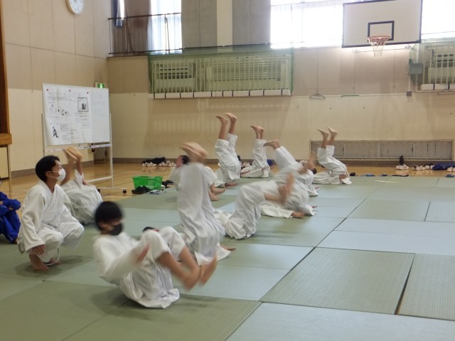 受け身を何度も練習していました。