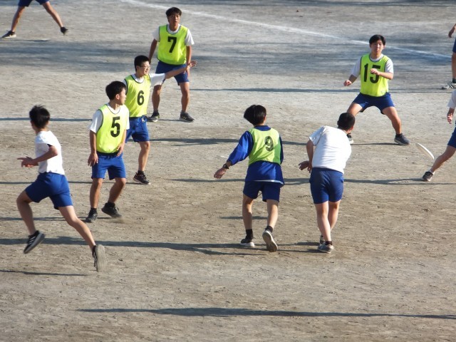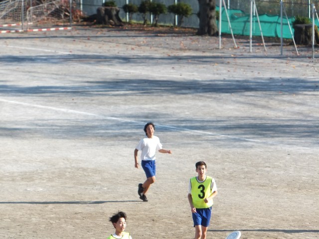3年生保健体育は、校庭でアルティメットのゲームを楽しんでいました。