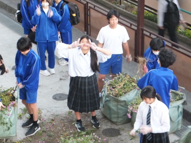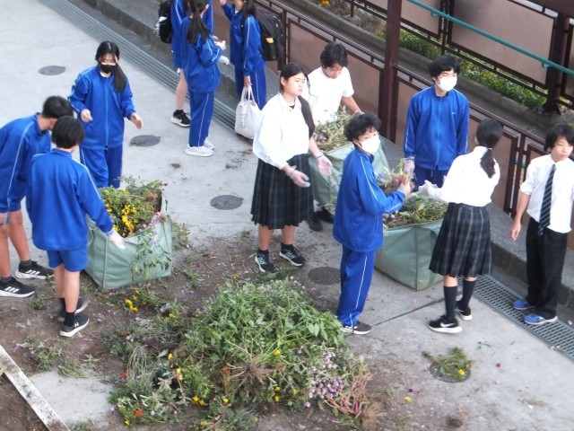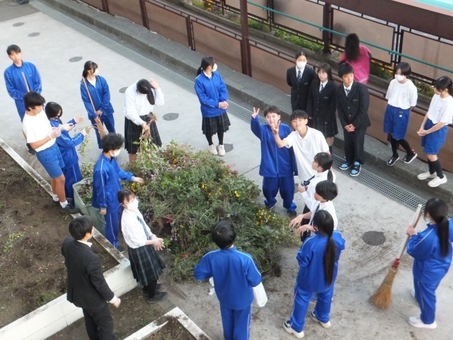 11月21日(金)放課後、美化委員会が花壇の花の入れ替え作業をしました。