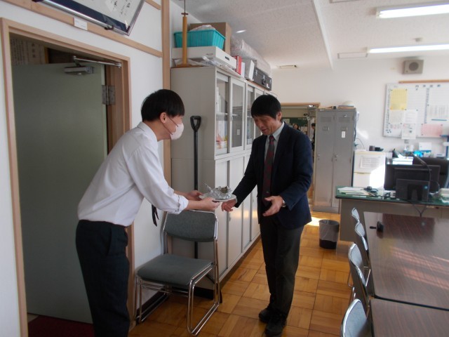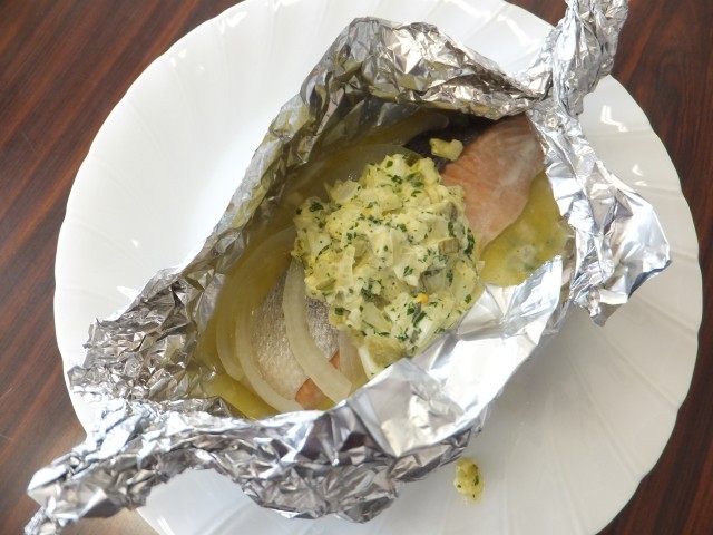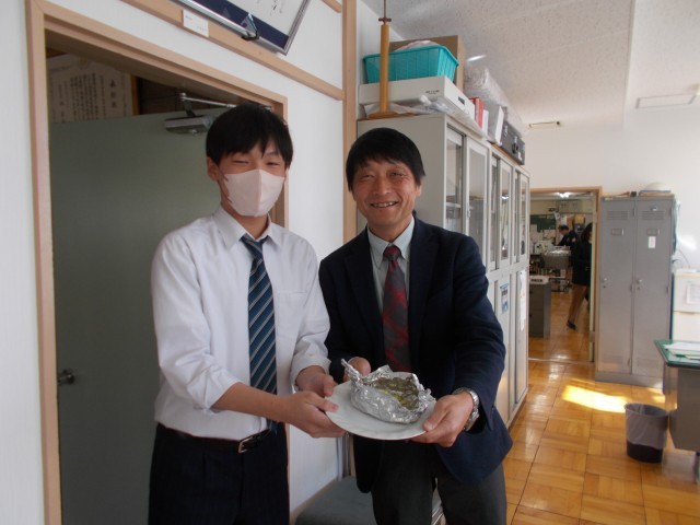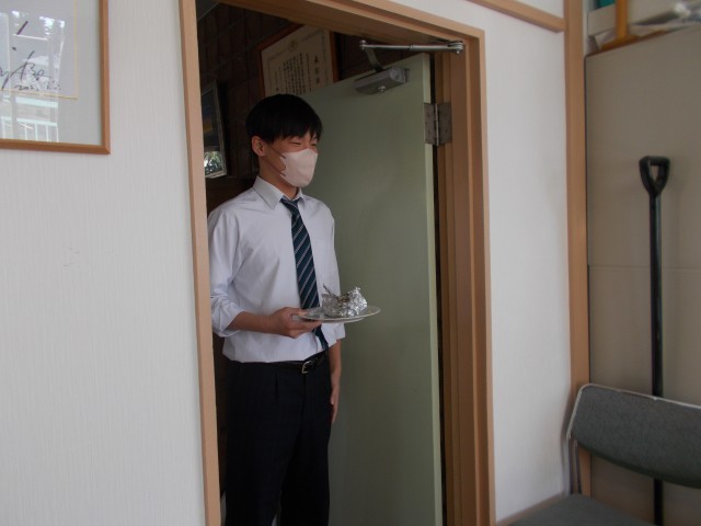 2枚目以降の写真は、3年生の調理実習で調理した「鮭のホイル焼き」を校長室に持ってきていただきました。