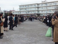 3年生は全員校庭に出て、集合写真を撮影していました。