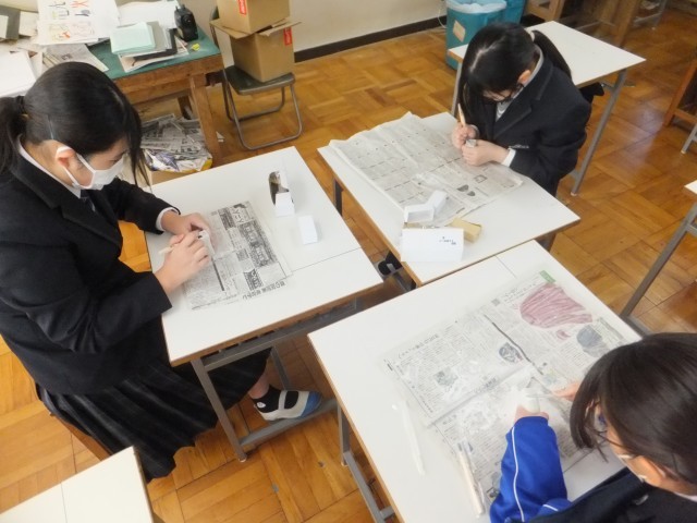 3年生美術は、篆刻に取り組んでいます。
