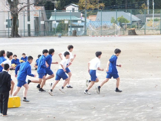 苦しい長距離走を、一生懸命に走る姿も三中生らしく素晴らしいと感じました。