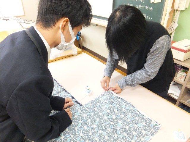 家庭科室では、1年生の被服の授業です。