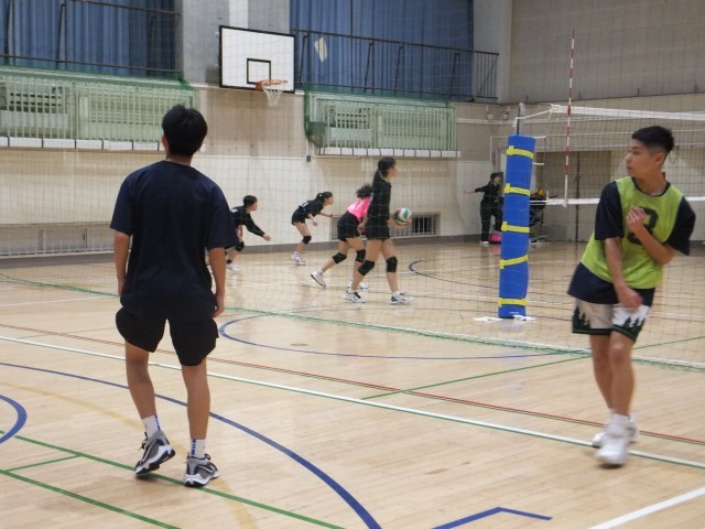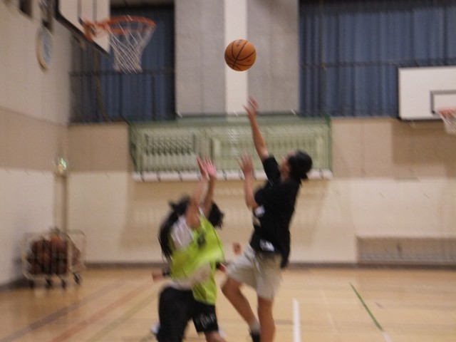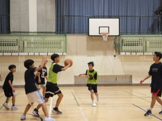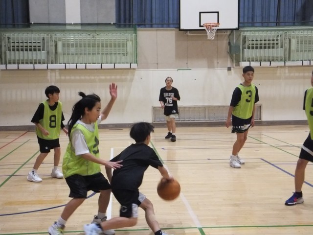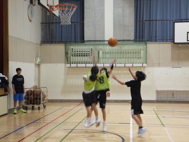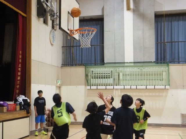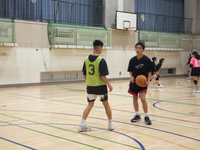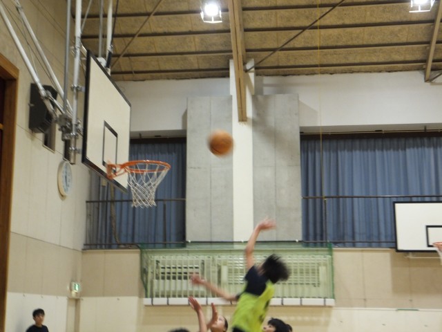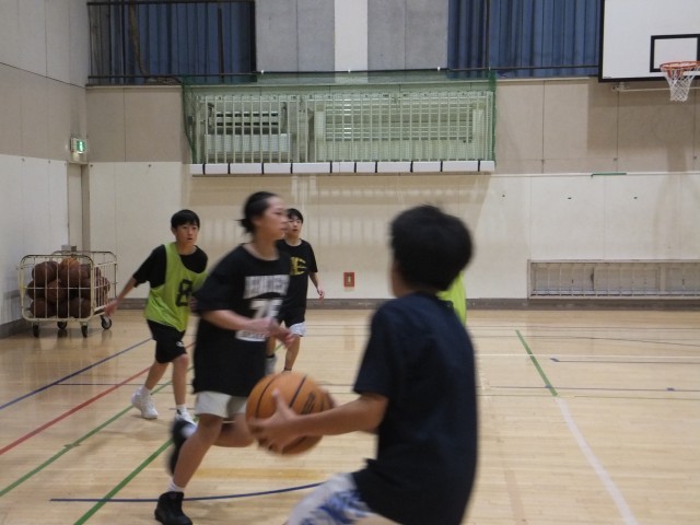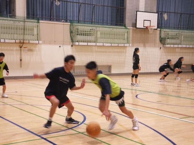 体育館舞台側では、バスケットボール部が練習していました。