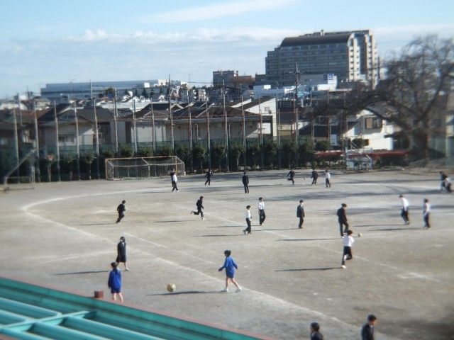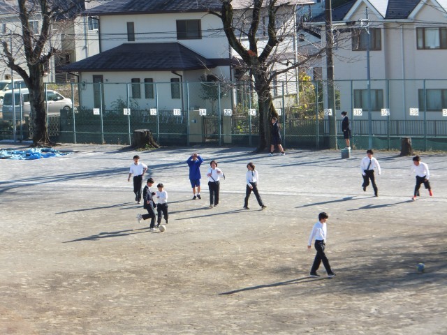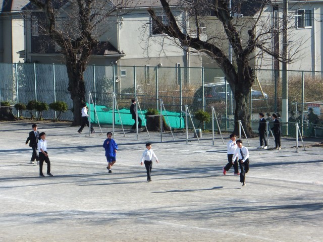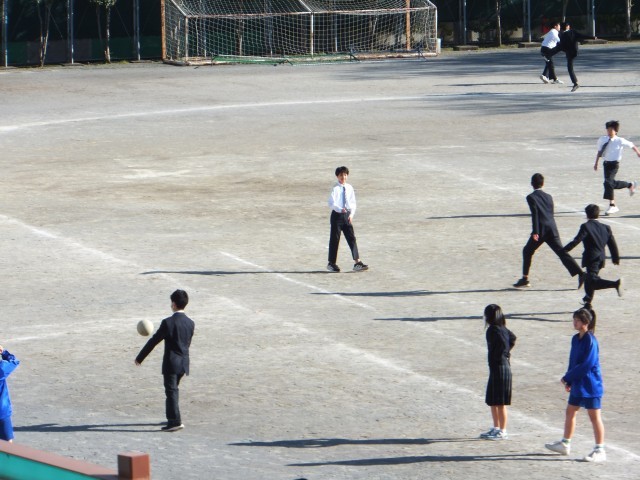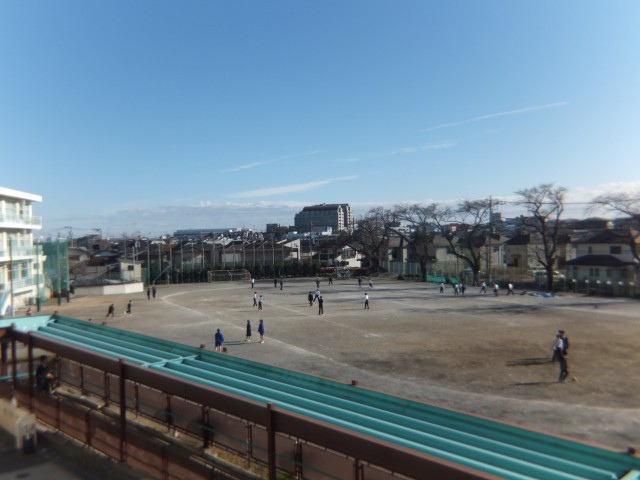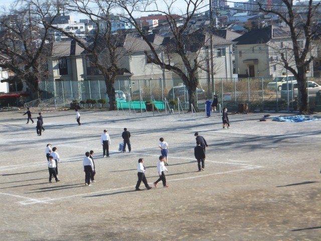 12月12日(金)、昼休みの三中生の声に誘われて、ベランダに出て校庭を眺めてみます。