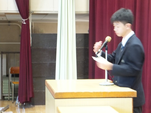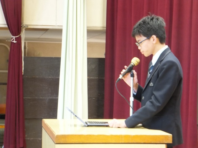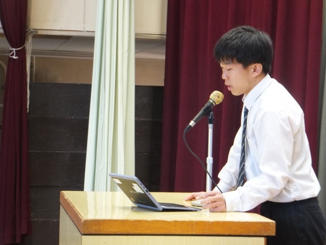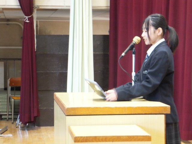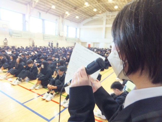 定刻前に体育館に集まり、生徒による司会で朝礼は始まりました。