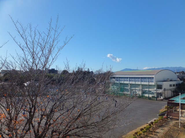 教室の窓からは、体育館越しに真っ青な空と遠く丹沢の山々がくっきりと見えます。