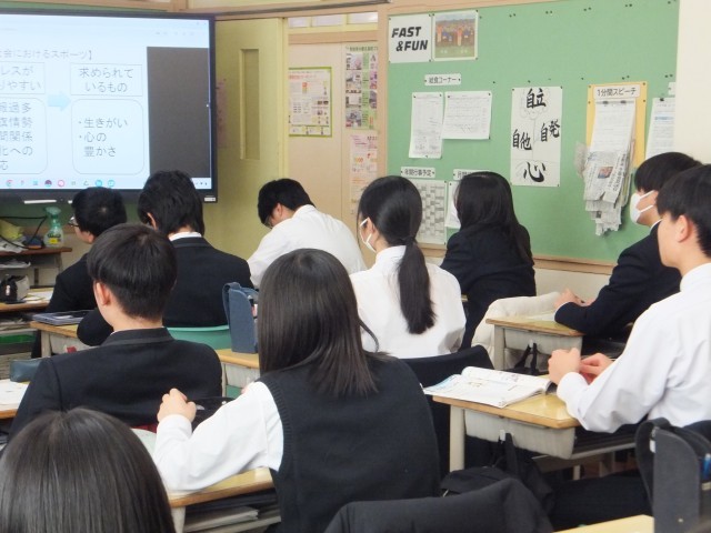 こちらは、3年生の保健(保健体育)の授業です。