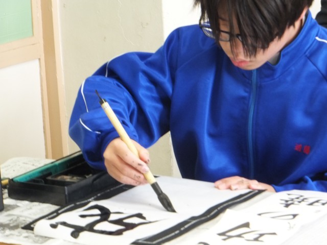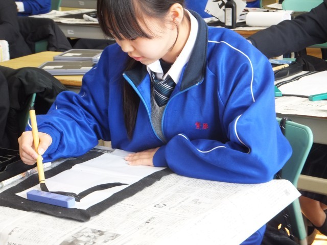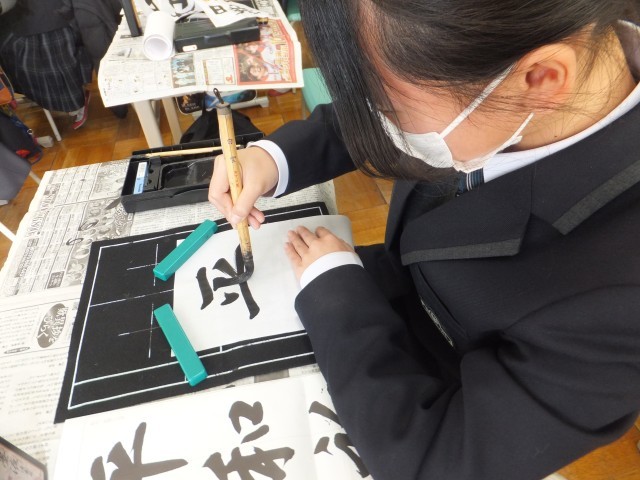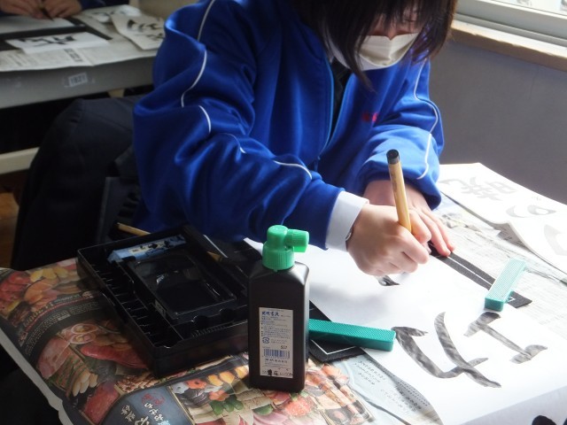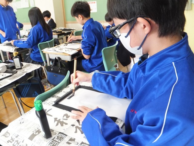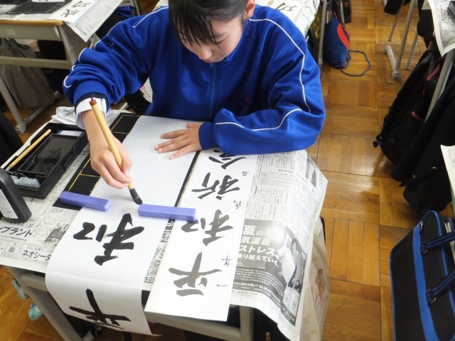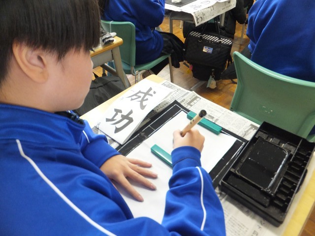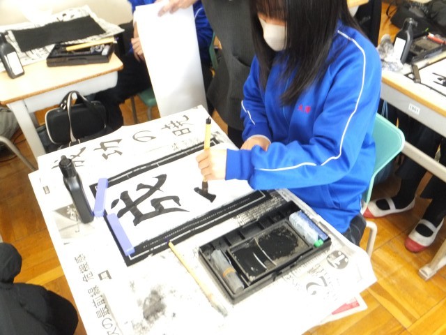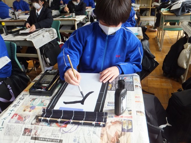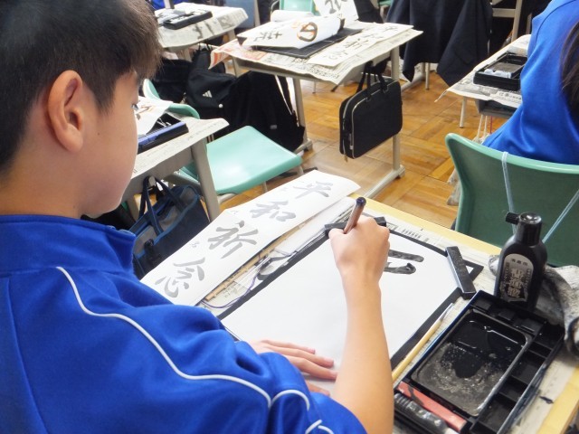 こちらは、先ほどとは別クラスの1年生毛筆の授業です。
