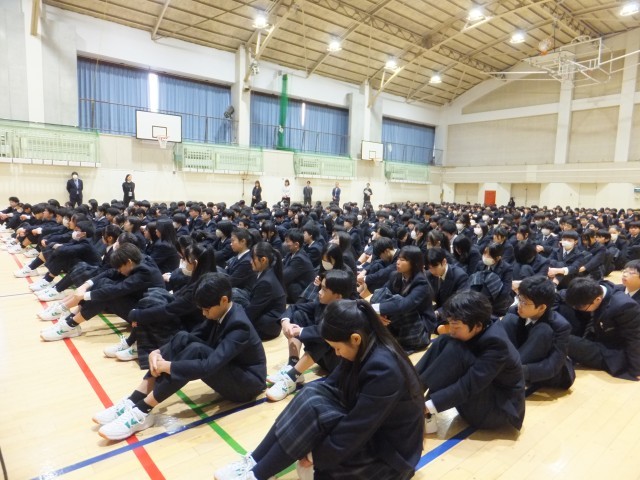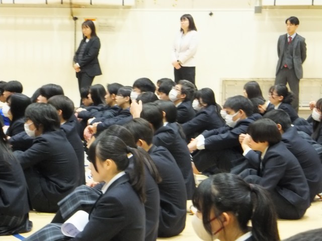 その後、テニス部と卓球部の表彰、さらに生活指導主任から2学期までの振り返りと、冬休みの生活について話がありました。