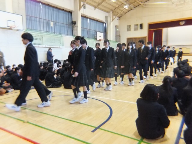 買いが終了すると、1、2年生の間に作られた「花道」を通って、3年生が順に退場します。