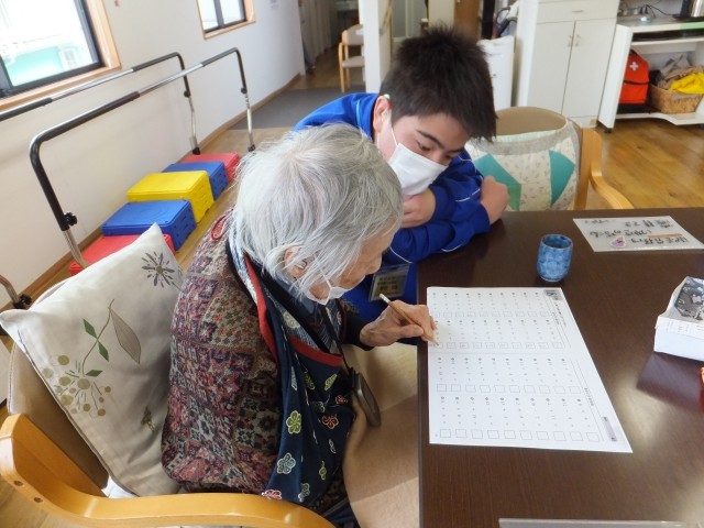 施設利用者に、優しくに寄り添って活動をしていました。