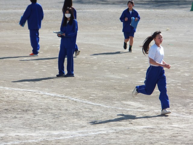 苦しい持久走ですが、一生懸命に頑張る三中生は素晴らしい。