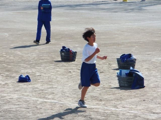 写真は、1年生の持久走に取り組んでいる様子です。