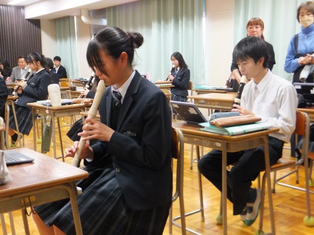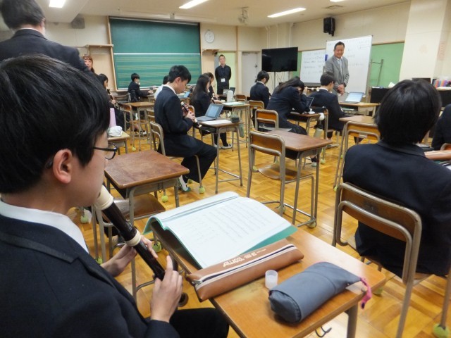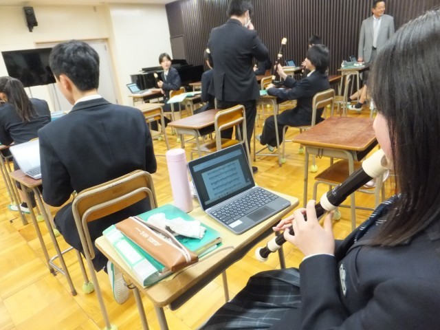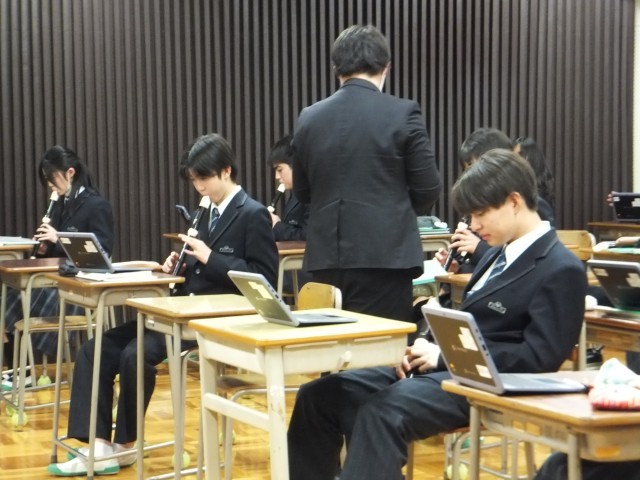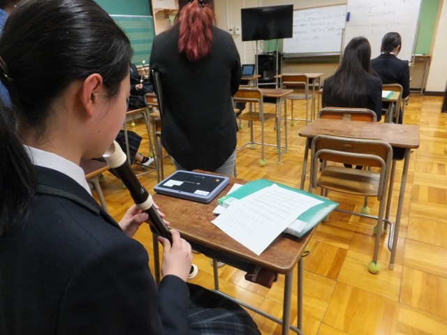 2年生の音楽は、音楽室でリコーダーに取り組んでいました。