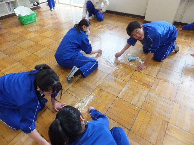 3月6日(金)5、6校時、3年生は3年間使用した校舎内などを掃除をしています。