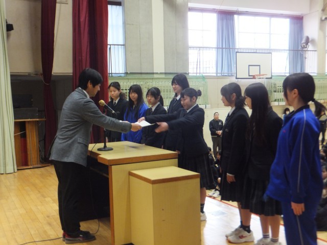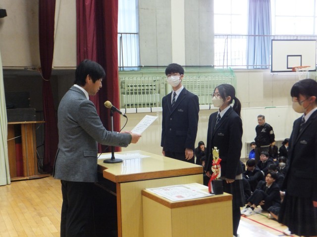 3月9日(月)生徒会朝礼の後、各表彰を行いました。