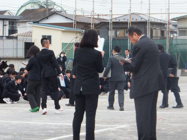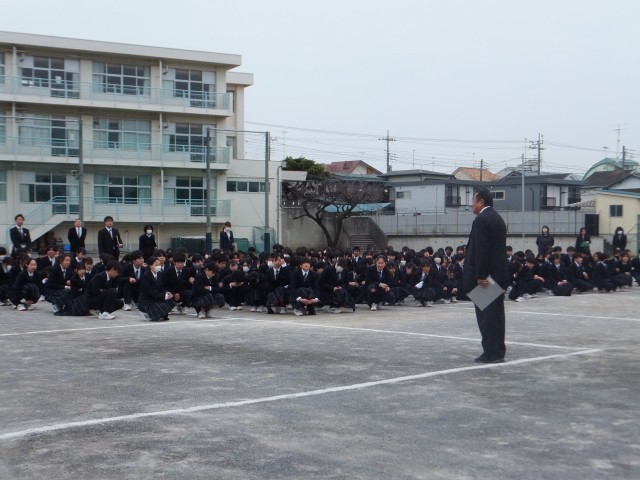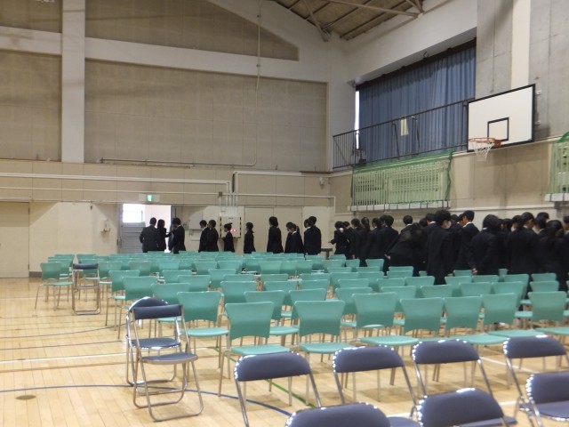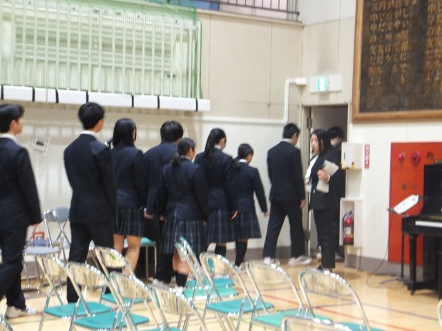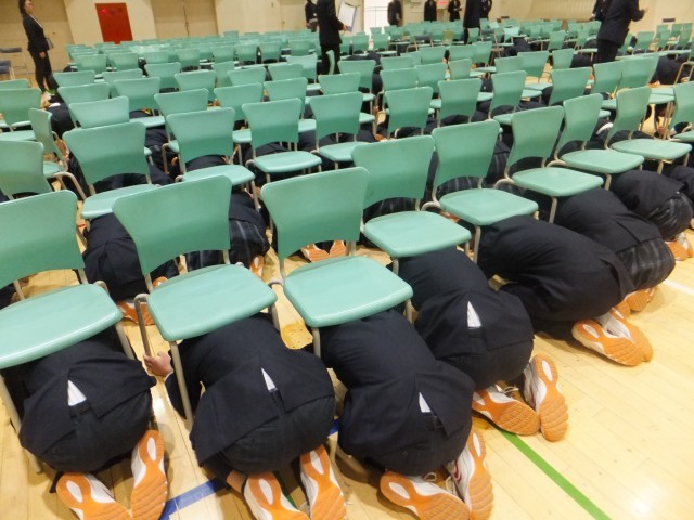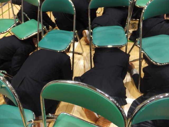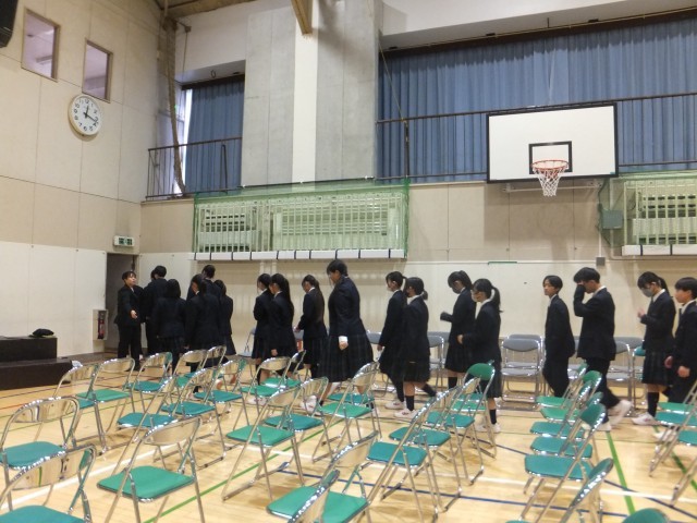 3月13日(金)、体育館で卒業式の予行練習、表彰が終わった後、地震を想定した避難訓練を実施しました。